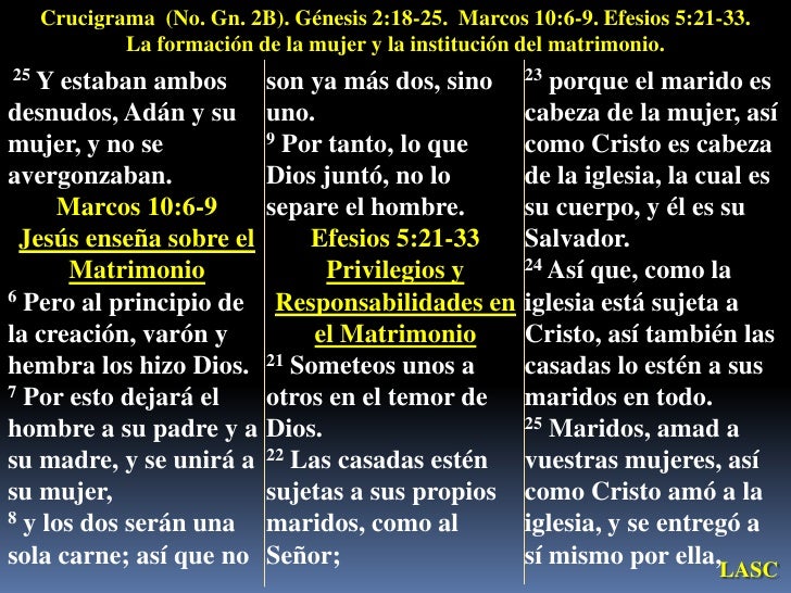 Y de la costilla que el Seor Dios haba tomado del hombre form una mujer y la trajo al hombre Gnesis 126-2. 6 sino que suba de la tierra un a vapor que. No es bueno que el hombre est solo.