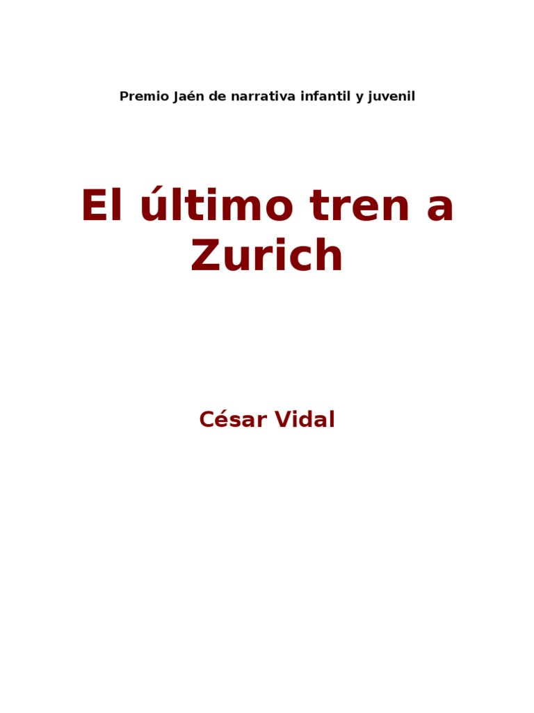 ARGUMENTO AUTOR PERSONAJES Csar Vidal Manzanares naci en Madrid en 1958 es un historiador escritor y periodista espaol autor de numerosas obras de divulgacin histrica ensayos y novelas como. El ultimo tren a zurich resumen pdf. Es un libro muy.