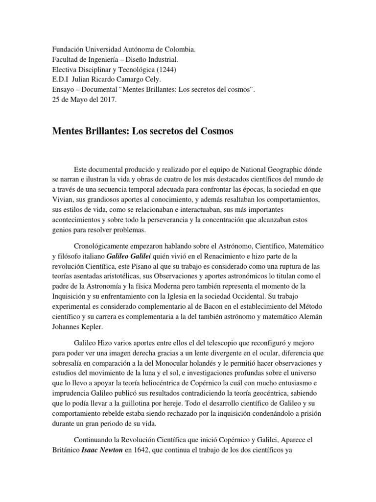 Ensayo Del Documental Mentes Brillantes Los Secretos Del Cosmos Ensayos Socoromondoc