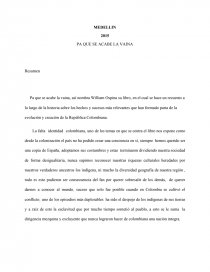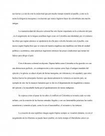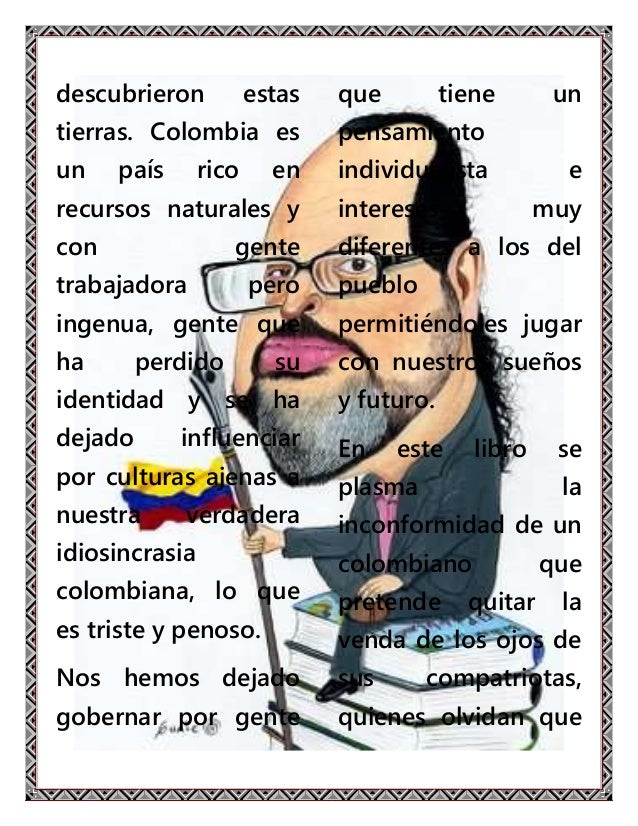 Porque contra un pueblo indgena donde la palabra viva en los labios era la fuente de mayor legitimidad los ttulos de propiedad terminaron llamndose en un tono casi bblico La escritura. Ospina resalta como el nico lder que ha tenido el pas ha sido Gaitn quien con sus conceptos de inclusin y con su verdadero discurso de integracin pretendan crear una conciencia de identidad y orgullo propio por la historia y la cultura en el pas este lder motiva cada. Pa que se acabe la vaina as nombra William Ospina su libro en el cual se hace un recuento a lo largo de la historia sobre los hechos y sucesos ms relevantes que han formado parta de la evolucin y creacin de la Repblica Colombiana.