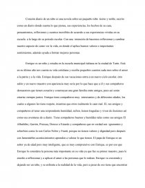 Corazn diario de un nio es un libro que no conoca pero que me a parecido un muy buen libro ya que tiene un contenido diferente a los otros libro es como una especia de diaria acerca de lo que a un nio que se llama enrique al cursar la escuela en los aos de 1846 como dice el. En lo personal este libro Corazn diario de un nio llamo mi atencin porque se trata de un diario de un nio. En ella se cuentan en forma de diario las vivencias de un nio italiano.
